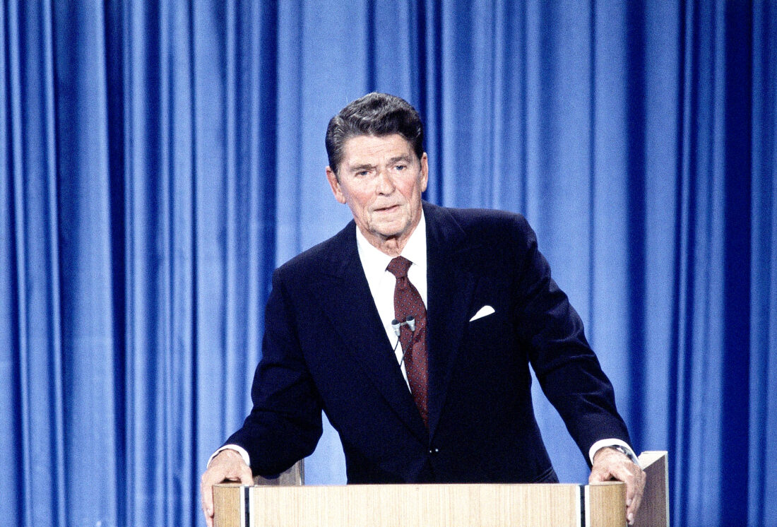 - Ronald Reagan debating John Anderson in Baltimore, Md., before the League of Women Voters, Sept. 21, 1980. (AP Photo/Barry Thumma)