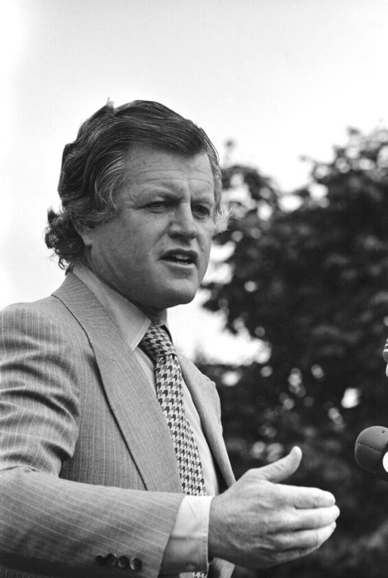 Sen. Edward Kennedy, D-Mass., addresses a predominately elderly audience at the Hebrew Home for the Elderly, Thursday, May 31, 1979, Riverdale, N.Y. Kennedy told his audience that a full and complete life should be the promise of this land. Kennedy also said that treatment of senior citizens is a good test of our civilization. (AP Photo/Suzanne Vlamis)