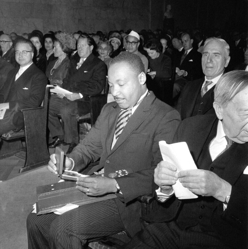 In 1964, Martin Luther King Jr. received his Nobel Peace Prize in Oslo, saying he accepted it “with an abiding faith in America and an audacious faith in the future of mankind.”