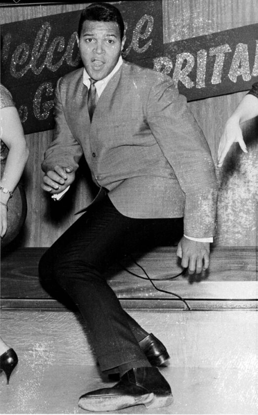 Chubby Checker, 20-year-old Philadelphia entertainer who started the "Twist" dance craze that has swept the nation, shows just how it's done with a hip-swiveling demonstration at a press reception in London, England, Dec. 14, 1961. Mr.Checker is in Britain for radio and television engagements. (AP Photo)