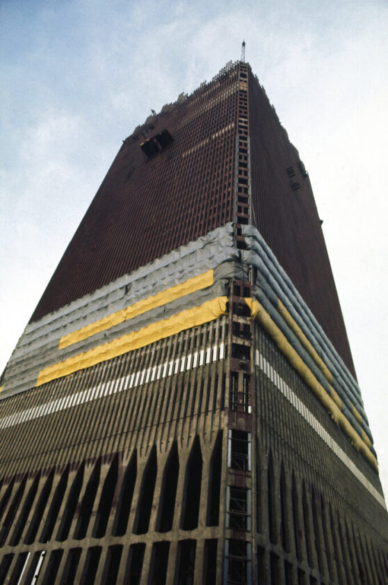 The new World Trade Center is shown under construction at Varick Street by the Hudson River, New York City, Jan. 27, 1970. (AP Photo)