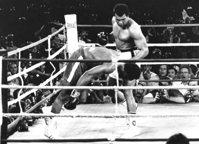 On Oct. 30, 1974, Muhammad Ali knocked out George Foreman in the eighth round of a scheduled 15-round bout known as the "Rumble in the Jungle," in Kinshasa, Congo (then Zaire), to ...