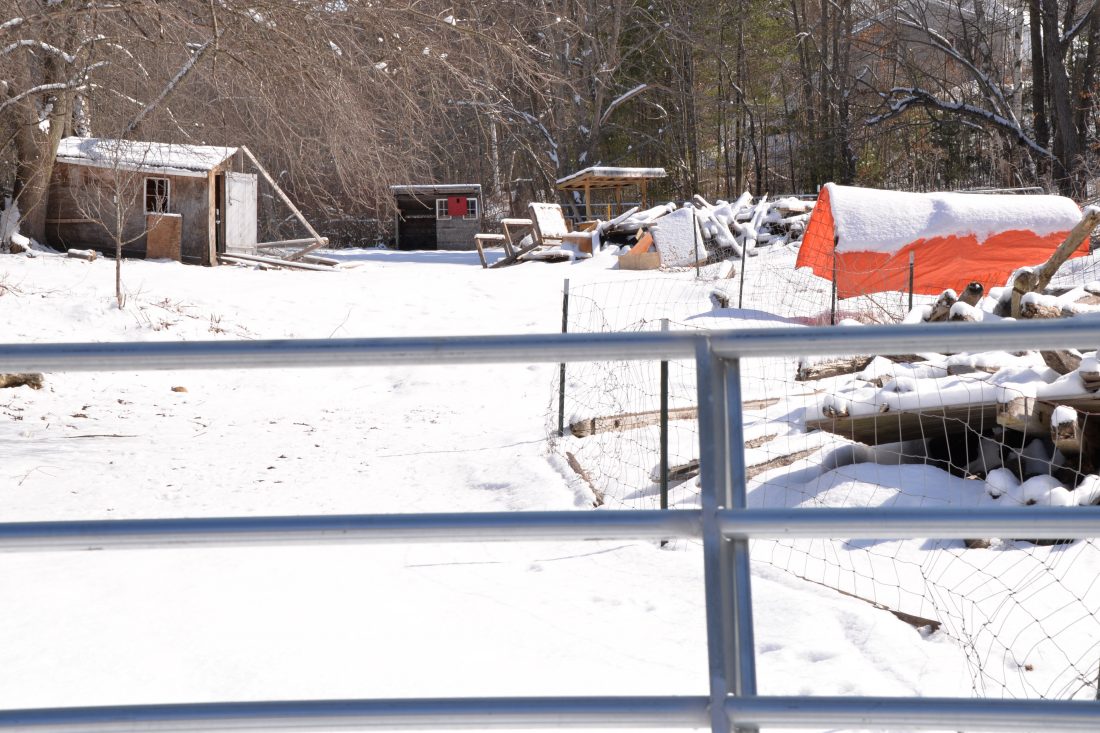 Telegraph photo by ADAM URQUHART Animal pens at 6 Coll St. in Hudson appear empty as of Thursday. Law enforcement officials seized 21 animals from the property Wednesday.