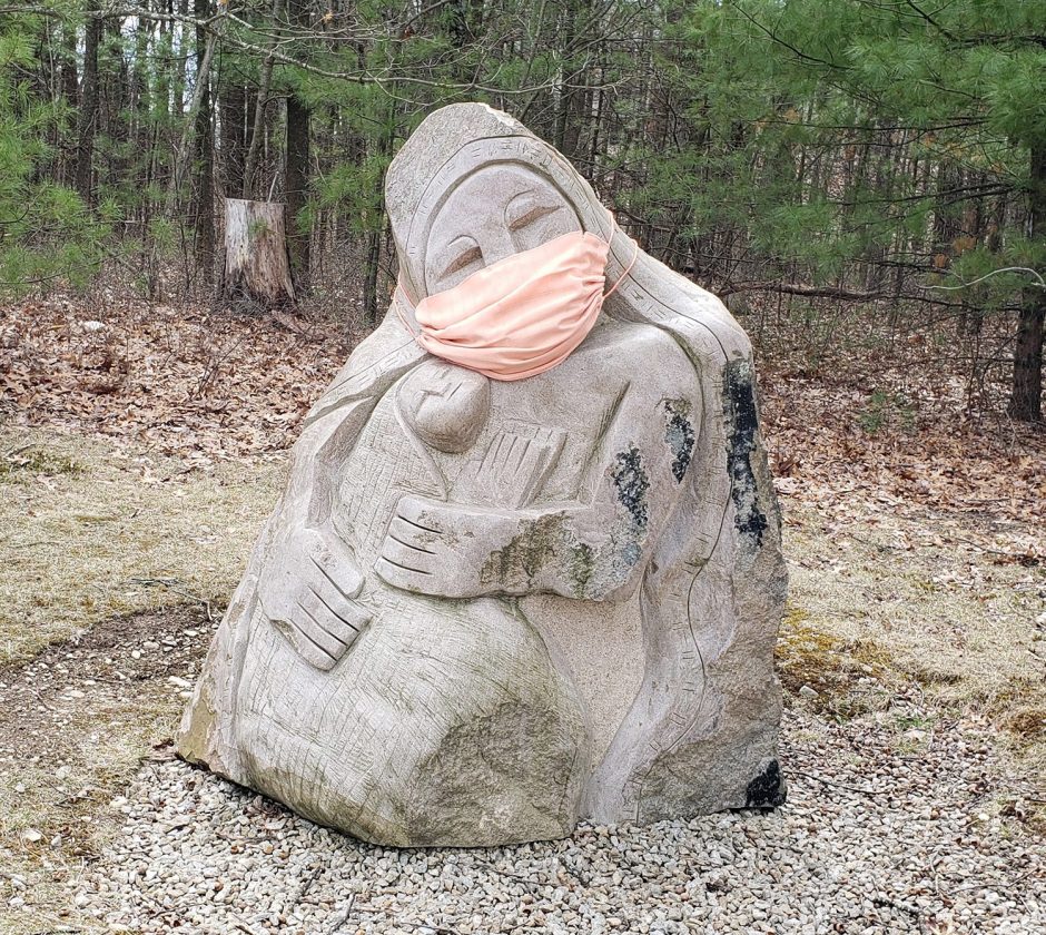 Even the mother in the Mother and Child sculpture at Roby Park is abiding by safety protocol during the COVID-19 virus pandemic, representing of the few lighter moments of the ongoing health crisis. The sculpture, created by Zimbabwean artist Ennica Mukomberanwa during the 2015 Nashua International Sculpture Symposium, was dedicated that fall.