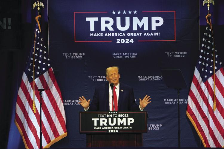 WOLFEBORO — Speaking before a jam-packed Kingswood Arts Center Monday, former President Donald Trump blamed President Joe Biden for conflict in Israel that erupted over the weekend.