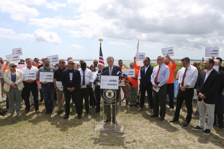 NORTH KINGSTOWN, R.I. (AP) — A nearly complete wind farm off the coast of Rhode Island and Connecticut faces an uncertain future after the Trump administration abruptly halted construction, and the states' Democratic governors, lawmakers and union workers called Monday for the president to ...
