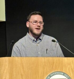 - Student speaker Spencer Davis addressed his classmates during the April 23 graduation of the 36th Cohort of the Microelectronic Boot Camp at Nashua Community College. Telegraph photo by CHRISTOPHER ROBERSON