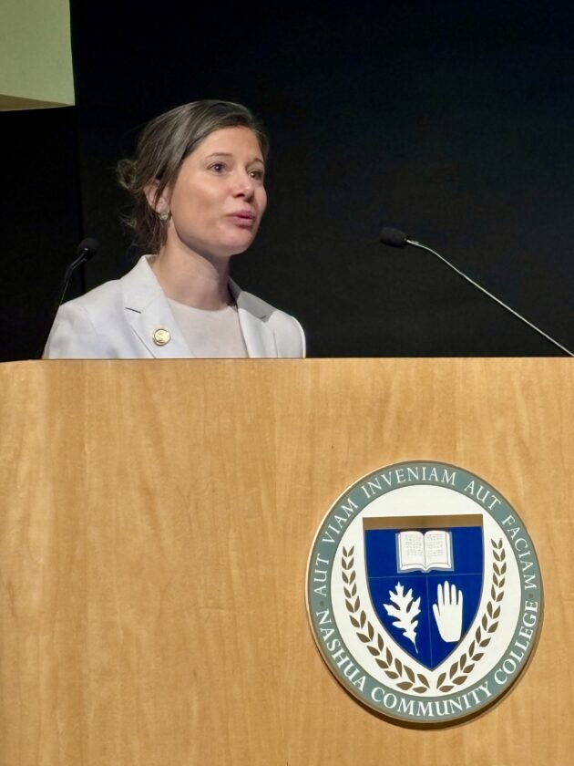 U.S. Congresswoman Maggie Goodlander (D-NH) delivers her remarks during the April 23 graduation of the 36th Cohort of the Microelectronic Boot Camp at Nashua Community College. Telegraph photo by CHRISTOPHER ROBERSON