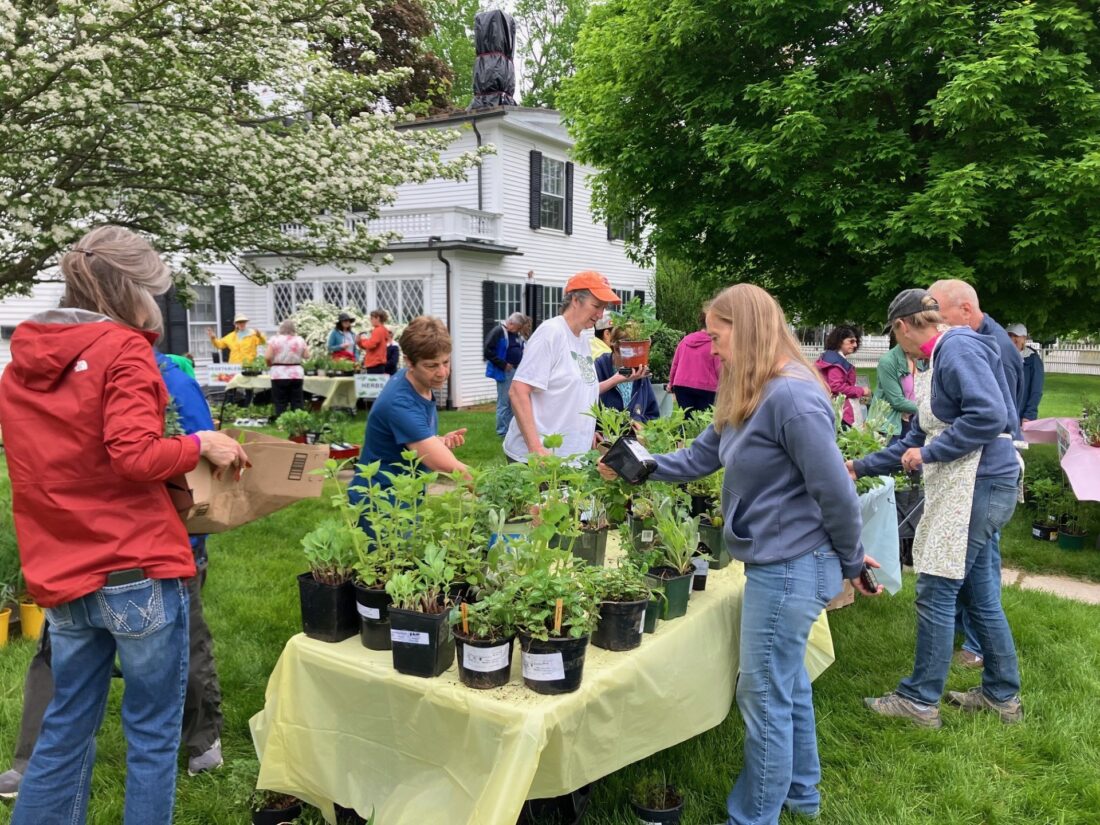 Plant sale attendees to the Nashua Garden Club's annual event, presented on the grounds of the Nashua Historical Society on Abbott Street, peruse tables filled with shrubs, saplings, annuals, perennials and gardening wares. Photo courtesy Nashua Garden Club