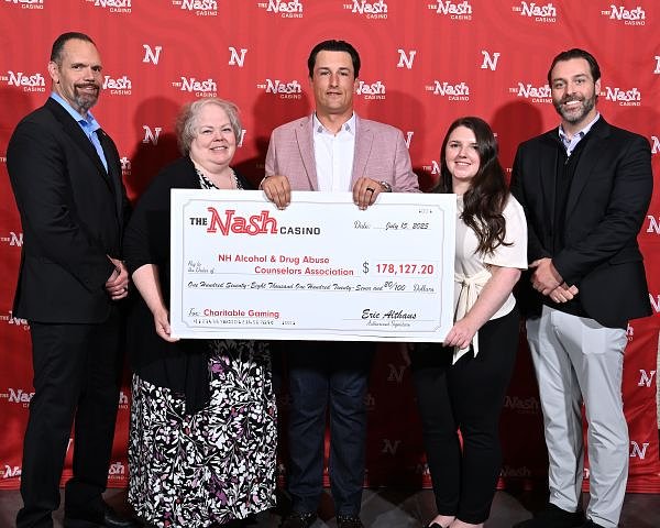 - Shown from left is The Nash Director of Security Robert Page, NH Alcohol & Drug Abuse Counselors Association Executive Director Dianne Castrucci, Board Treasurer Christopher Foster, Development Director Destiny Heery and The Nash Assistant General Manager Aaron Feinberg. Courtesy photo/The Nash Casino