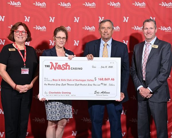 - Shown from left is The Nash Director of Communications & Charity Christine Latino, Boys & Girls Club of Souhegan Valley Executive Director Nicole Forsyth, Board President Steven Demarais and The Nash General Manager Eric Althaus. Courtesy photo/The Nash Casino