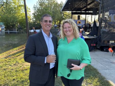 - Superintendent of Schools Dr. Mario Andrade and Board of Education President Jennifer Bishop during this year’s Nashua Goes Back To School event on Aug. 21 at Library Plaza. Telegraph photo by CHRISTOPHER ROBERSON