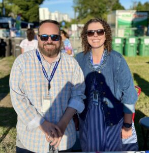 Principal Michael Harrington and Assistant Principal Nicole Mazze of Fairgrounds Elementary School during this year's Nashua Goes Back To School event on Aug. 21 at Library Plaza. Telegraph photo by CHRISTOPHER ROBERSON