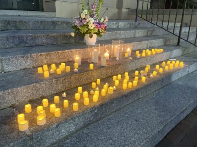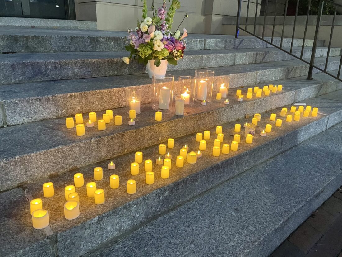 Candles on the steps of City Hall during a vigil held in remembrance of Robert DeCesare. Courtesy photo