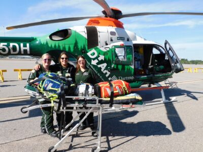 The whoosh-whoosh of helicopter blades signaled the landing of the Dartmouth Hitchcock Advanced Response Team (DART), operational for 30 years of life saving. The flying ambulance whirlybird is on call 24-hours to transport patients to hospitals throughout Northern New England from air bases in Lebanon and Manchester.