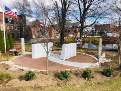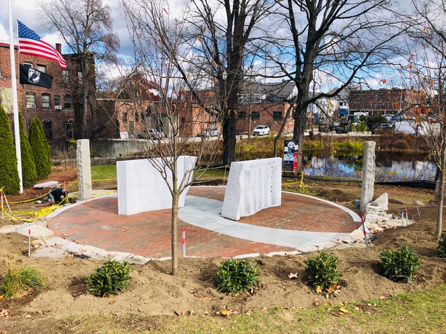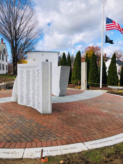 The committee members, donors, volunteers and town officials were well credited at the ceremony for endless hours of work. The sculpture consists of two large blocks of Milford granite weighing six tons each, both enclosed within a circumference of curved stones bearing dates of note relevant to the war.