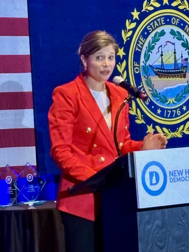 Congresswoman Maggie Goodlander (D-NH) delivered her remarks at this year’s Eleanor Roosevelt Dinner on Nov. 14. Telegraph photo by CHRISTOPHER ROBERSON