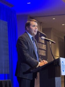 Congressman Chris Pappas (D-NH) delivered his remarks at this year’s Eleanor Roosevelt Dinner on Nov. 14. Telegraph photo by CHRISTOPHER ROBERSON