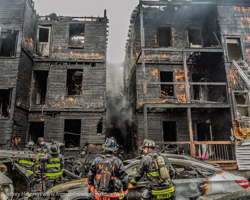 According to Nashua Fire Rescue, firefighters responded to the scene at 6:28 a.m. and encountered heavy flames at the rear of the Ash Street property. Crews also found fire in the rear of 115 Vine St., prompting a second alarm.