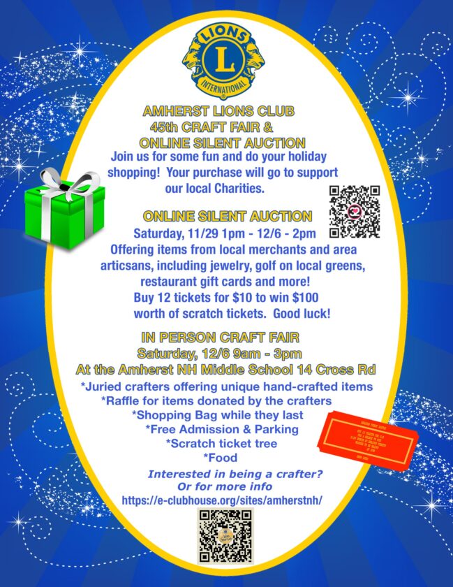 Amherst Lions Club 45th Craft Fair upcoming at middle school on Dec. 6