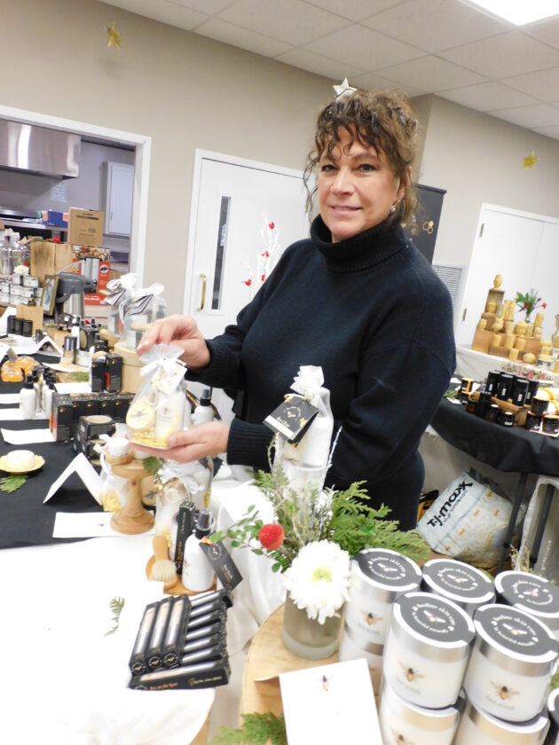- Marie Pelletier, representing Beeline Skin Care — Beeline LLC —in Henniker, added to the event a variety of luxury holiday gifts of creams, lotions and other natural products. Photo by LORETTA JACKSON