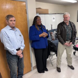 - Shown from left are Richard Laliberte of Meals on Wheels, Pastor Chevon of the Tolles Street Mission Church and Peter Russell of the Corpus Christi Food Pantry during the second annual Christmas party at the Xavier House on Dec. 16. Telegraph photo by CHRISTOPHER ROBERSON
