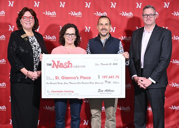 - Shown from left is The Nash Communications Director Christine Latino, St. Gianna’s Place Board President Elizabeth Neville, Board Treasurer Michael Redding and The Nash General Manager Eric Althaus. Courtesy photo/The Nash Casino