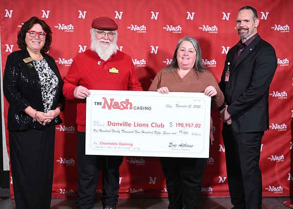 - Shown from left is The Nash Communications Director Christine Latino, Danville Lions Club Past President Robert Choumitsky, President Sonia Landry and The Nash Security Director Robert Page. Courtesy photo/The Nash Casino