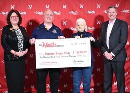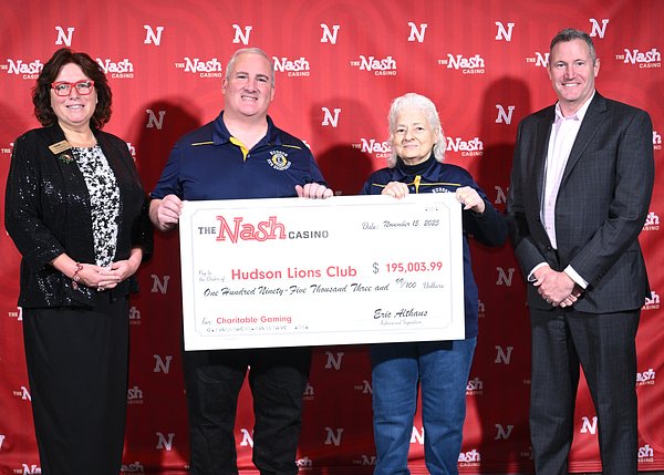 - Shown from left is The Nash Communications Director Christine Latino, Hudson Lions Club President Gary Gasdia, Chairwoman Celeste Ricupero and The Nash General Manager Eric Althaus. Courtesy photo/The Nash Casino