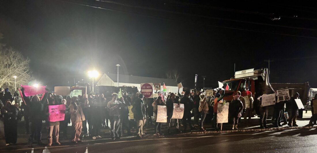 Residents outside Town Hall on Jan. 8 protesting the possibility of an ICE detention facility in Merrimack. Telegraph photo by CHRISTOPHER ROBERSON