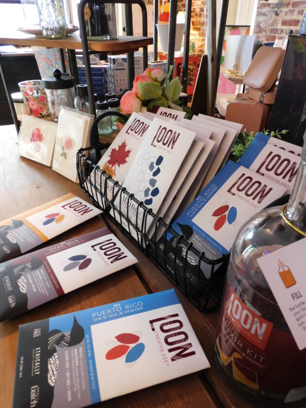 Violas & Roses Gift Shop supports entrepreneurs and local artists including the makers of Loon Chocolates in Manchester and note cards from Earth Sky + Water in Wilton. Photo by LORETTA JACKSON