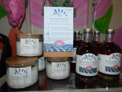 Unique among the favorites at Violas & Roses Gift Shop are lavender soy candles and simple syrups crafted from the many varieties of lavender grown in the extensive lavender fields at Pumpkin Blossom Farm in Warner. Photo by LORETTA JACKSON