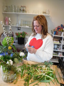 Violas & Roses owner Michele Canto designs a floral arrangement for a corporate event at her full-service flower and gift shop, one that also carries a wide variety of locally made products. Photo by LORETTA JACKSON