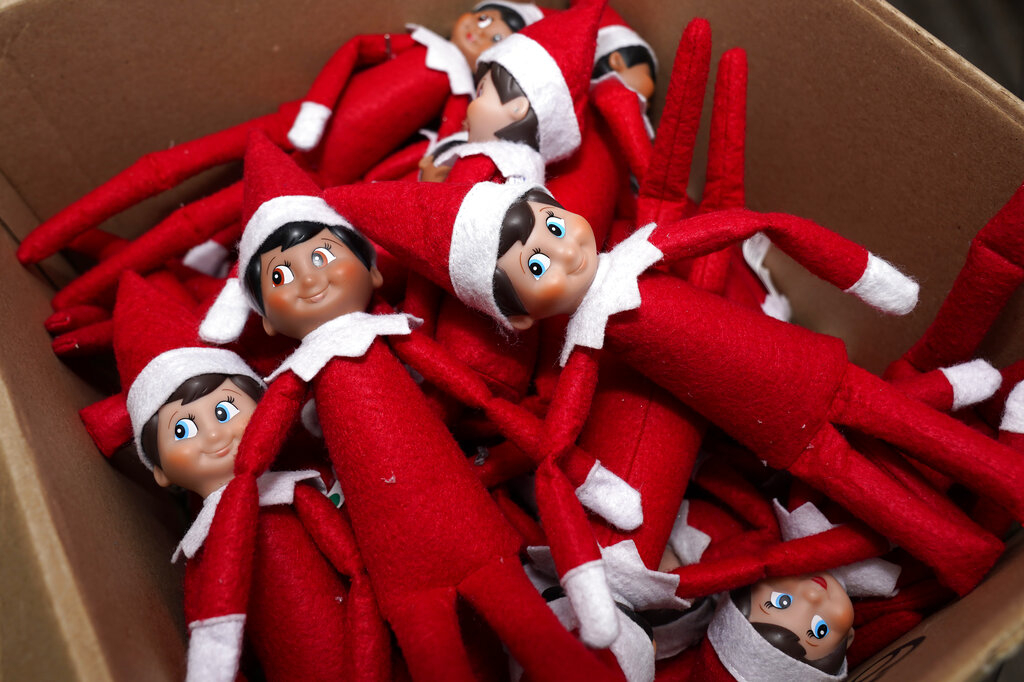 Elf on the Shelf figures are piled in a box at the company's studio Thursday, Aug. 27, 2020, in Atlanta. Thousands of suppliers routinely rely on credit insurance to cover potential losses if any of the retailers they work with can’t pay for the goods they’ve ordered. But now insurers are scaling back on coverage because they are unwilling to take a chance on retailers that are struggling to survive during the pandemic. Christa Pitts, founder and co-CEO of The Lumistella Company, which produces toys, books and other products under the Elf on the Shelf and Elf Pets brands, says her retail orders were covered 100% before the pandemic. Now, only 50% are covered, forcing her to rethink who she will sell to. (AP Photo/John Bazemore)