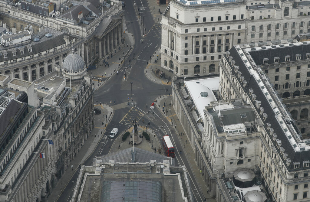 LONDON (AP) — On the surface, London’s financial district appears to be a shell of its former self. No one is rushing to meetings. Chairs are flipped upside down on tables inside closed cafes and pubs. The roads are ghostly quiet on a bright spring morning.
