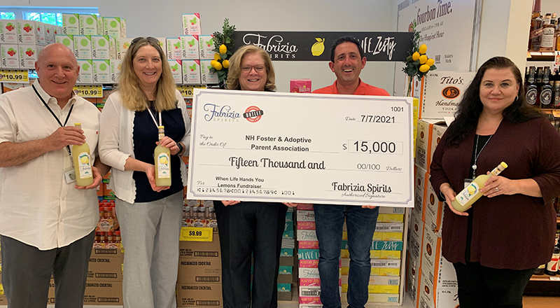 CONCORD – Fabrizia Spirits exceeded the $100,000 fundraising milestone with its “When Life Hands You Lemons” initiative, which has raised critical funding for New Hampshire nonprofit organizations over the past 11 years. Fabrizia Spirits has teamed up with the New Hampshire Liquor Commission (NHLC) and its broker partner, Southern Glazer’s Wine and Spirits, to donate a portion of profits from Fabrizia’s New Hampshire sales each May. In exceeding the $100,000 milestone this year, Fabrizia Spirits generated a record high of $15,000 for the New Hampshire Foster & Adoptive Parent Association (NHFAPA) to support the expansion of Sibling Connections into New Hampshire, a nonprofit that reconnects siblings separated by foster care.