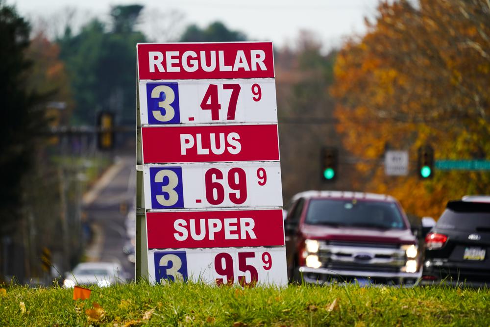 Gasoline prices are displayed at a station in Huntingdon Valley, Pa., recently. OPEC and allied oil-producing countries met Thursday under the shadow of a surprise new COVID-19 threat, with uncertainty over the omicron variant's future impact on the global economic recovery hanging over their decision on how much oil to pump to a world that is paying more for gasoline. (AP photo)