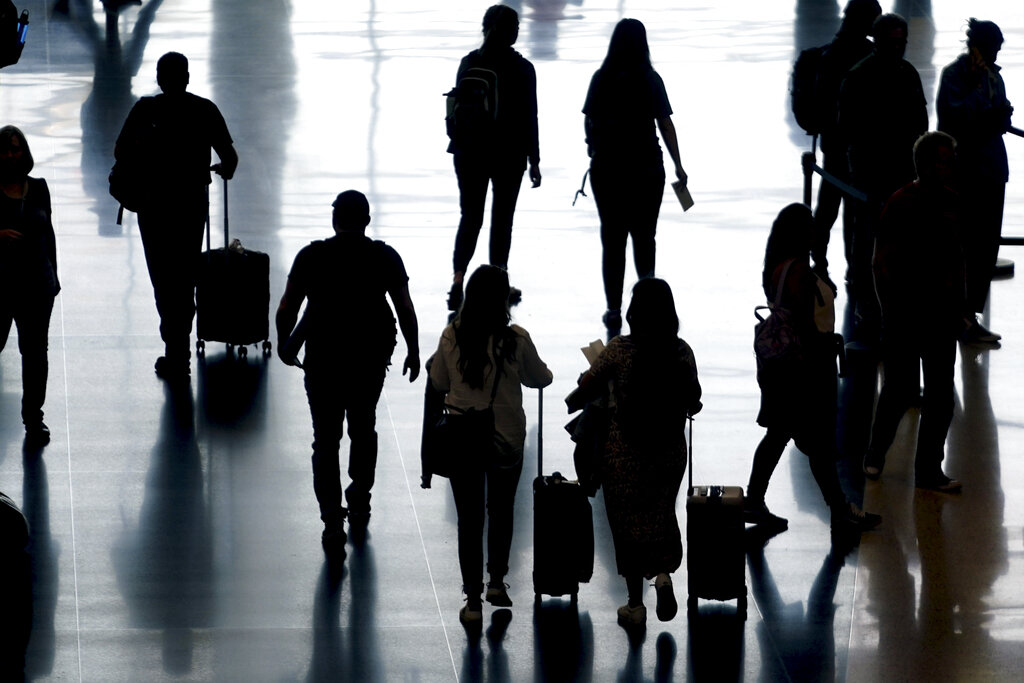 FILE - People pass through Salt Lake City International Airport on June 27, 2022, in Salt Lake City. Frontier Airlines and four foreign carriers have agreed to refund more than $600 million combined to travelers whose trips were canceled or significantly delayed since the start of the pandemic, federal officials said Monday, Nov. 14, 2022. (AP Photo/Rick Bowmer, File)