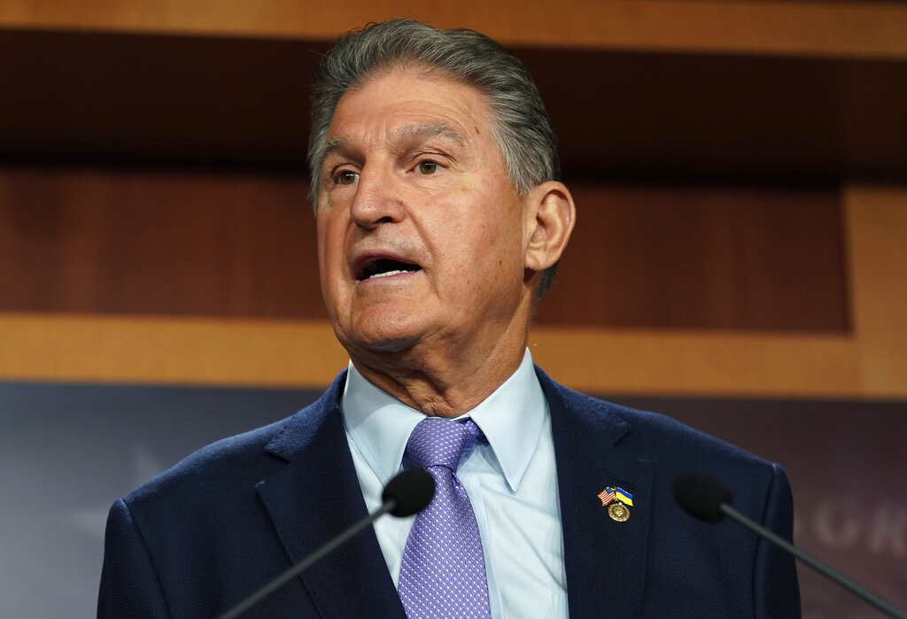 FILE - Sen. Joe Manchin, D-W.Va., speaks during a news conference on Sept. 20, 2022, at the Capitol in Washington. With just under a month left to submit challenges to the federal government disputing its newly released draft map displaying where internet services are available across West Virginia, state leaders say they have already found inconsistencies and are urging residents to review the maps and submit their own claims. (AP Photo/Mariam Zuhaib, File)