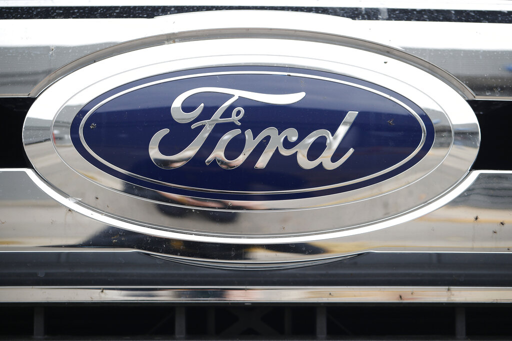 FILE - In this Sunday, Oct. 20, 2019, photograph, the company logo shines off the grille of an unsold 2019 F-250 pickup truck at a Ford dealership in Littleton, Colo. Ford reports financial earnings on Thursday, Feb. 2, 2023. (AP Photo/David Zalubowski, File)