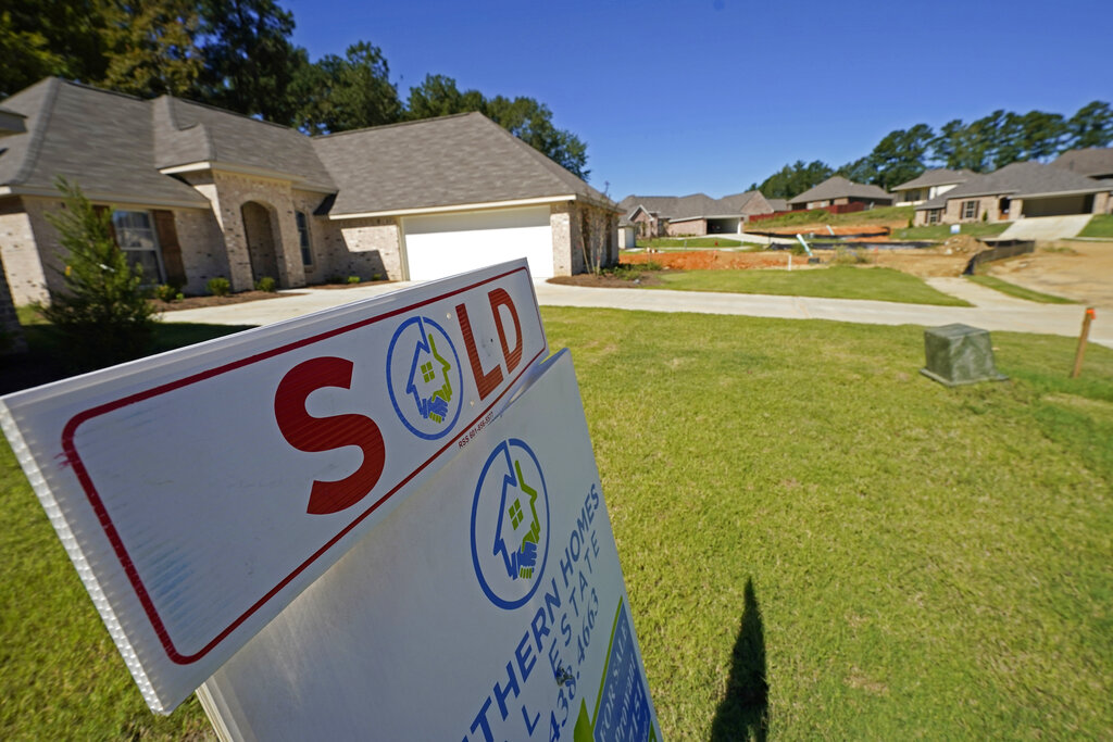 FILE - A "Sold" sign decorates the lawn of a new house in Pearl, Miss., Sept. 23, 2021. Homeowners are increasingly tapping their equity, taking advantage of big gains following years of soaring housing prices. Some 333,537 home equity loans were taken out by homeowners in the third quarter of 2022, according to data from TransUnion. (AP Photo/Rogelio V. Solis, File)