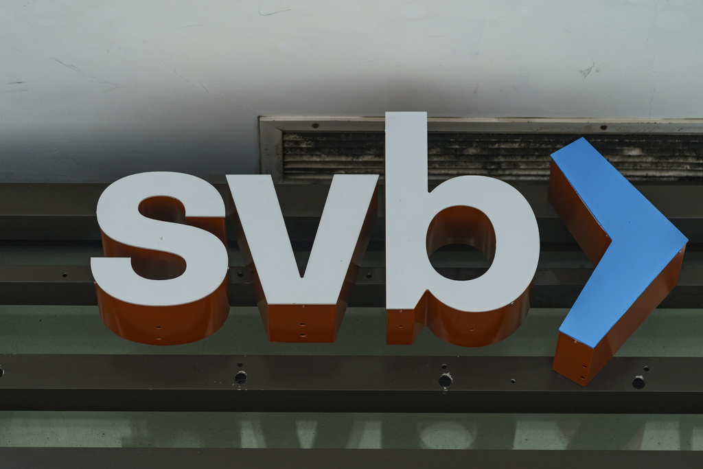 FILE - The Silicon Valley Bank logo is seen at an open branch in Pasadena, Calif., on March 13, 2023. The Federal Deposit Insurance Corp. says First Citizens will acquire much of Silicon Valley Bank, whose collapse has rattled the banking industry (AP Photo/Damian Dovarganes, File)