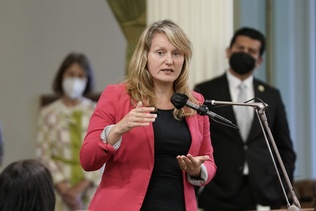 FILE- California Assemblymember Buffy Wicks, D-Oakland, speaks at the Capitol in Sacramento, Calif., on June 27, 2022. Wicks authored a bill this session that would require Big Tech companies such as Google and Meta to share advertising revenue with media outlets for using their news content. The bill cleared another hurdle Tuesday, May 2, 2023, after receiving bipartisan support from the Assembly Judiciary Committee. (AP Photo/Rich Pedroncelli, File)