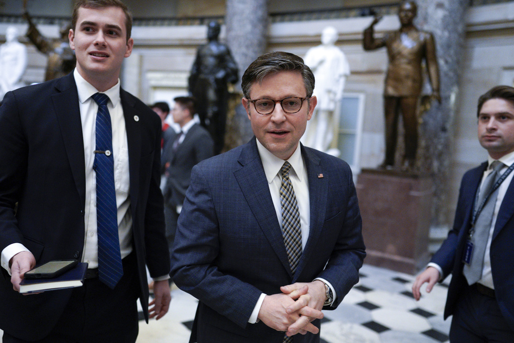 House Speaker Mike Johnson of La., walks on Capitol Hill, Thursday, Jan. 18, 2024, in Washington. (AP Photo/Yuri Gripas)