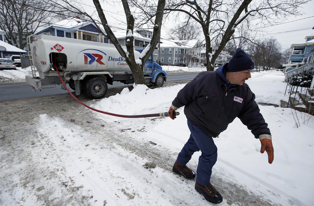 FILE - Paul Dorion, a driver for the Downeast Energy, delivers heating oil to a home in Portland, Maine, Jan. 14, 2015. (AP Photo/Robert F. Bukaty, File)