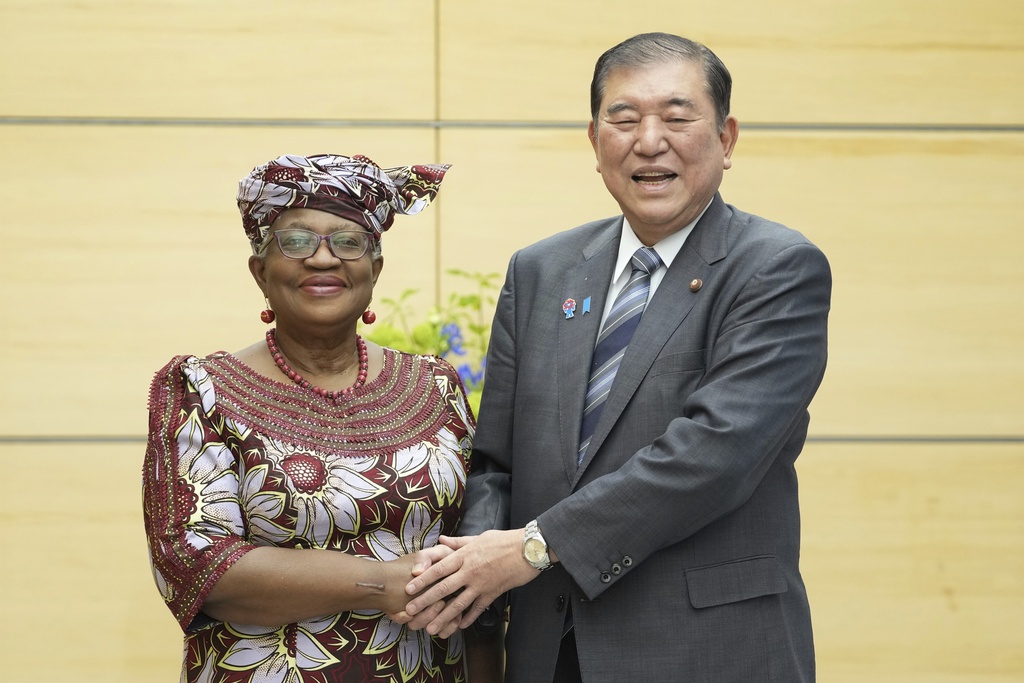 Ngozi Okonjo-Iweala, director-general of the World Trade Organization, told Ishiba that she has high expectations for Japan as a champion of open markets as U.S. President Donald Trump disrupts world commerce with his fast-changing tariffs and other policies.