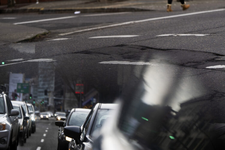 PORTLAND, Ore. (AP) — The pothole outside Timothy Taylor's home was so deep, he could hear the clunk of cars hitting it from inside his house.