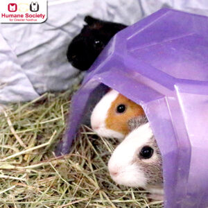 Golden Guinea Piggies: Hello, friend! We are a trio of adorable, curious guinea pigs who are looking for our new home and family. Our names are Rose (orange/white), Blanche (gray/white), and Dorothy (black). We are all two years old. We are easygoing, friendly sisters who would like to go home together. We’ve been together our whole lives! If you have room in your home and your heart for all three of us, please come to the shelter to meet us! You can learn more about me and all of my friends for adoption at https://www.hsfn.org/adopt.
