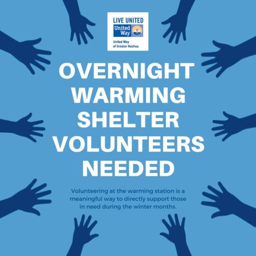 NASHUA – The United Way of Greater Nashua is calling for volunteers to help support the newly-established Overnight Warming Station, aimed at preventing injury and loss of life during the cold winter months for individuals experiencing unstable housing and homelessness.