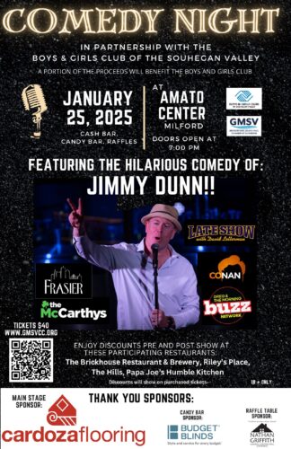 MILFORD - Comedian Jimmy Dunn will be on stage at the Amato Center, 56 Mont Vernon St. on Jan. 25.
